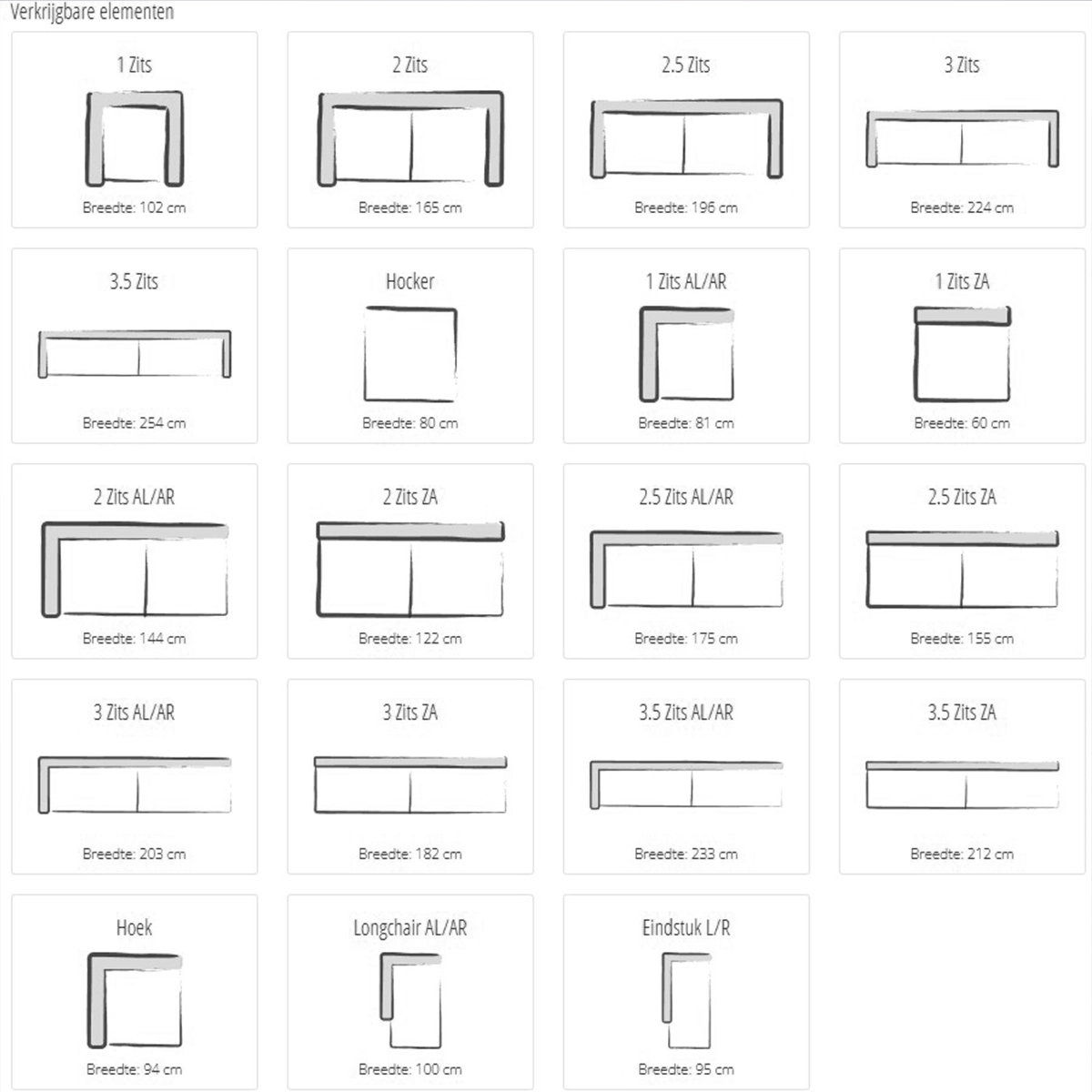 ✓ Vele afmetingen en opstellingen.