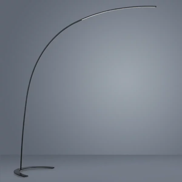 Een vloerlamp die indruk maakt met zijn opvallende maar minimalistische design. De gebogen vorm van de lamp is een echte blikvanger. Dankzij het slanke ontwerp gaat de lamp echter perfect op in zijn omgeving. Hij heeft weinig ruimte nodig om toch een groots effect te creëren.