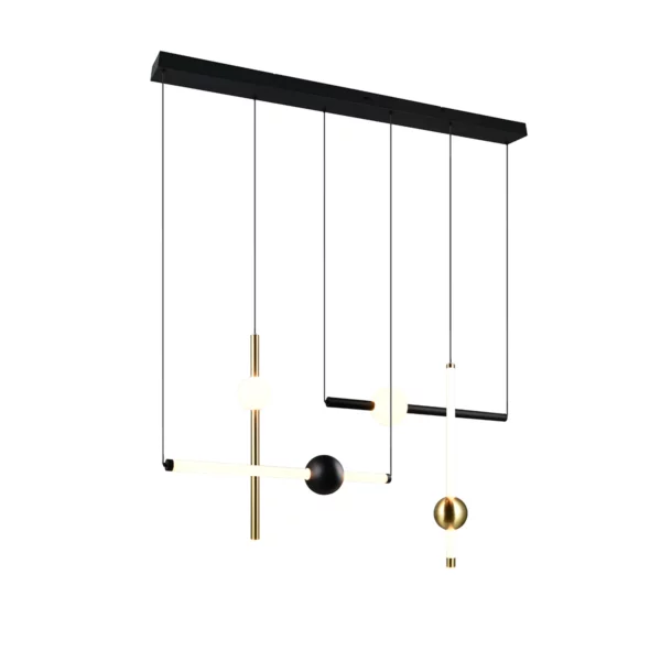 Hanglamp Honey is een eigenaardige en opvallende design hanglamp in een stijlvolle combinatie van goud en zwart. Met een breedte van 110 cm is deze lamp een echte blikvanger boven de eettafel. Het speelse, dynamische ontwerp geeft de lamp een artistiek karakter en maakt haar tot een uniek interieurstatement.