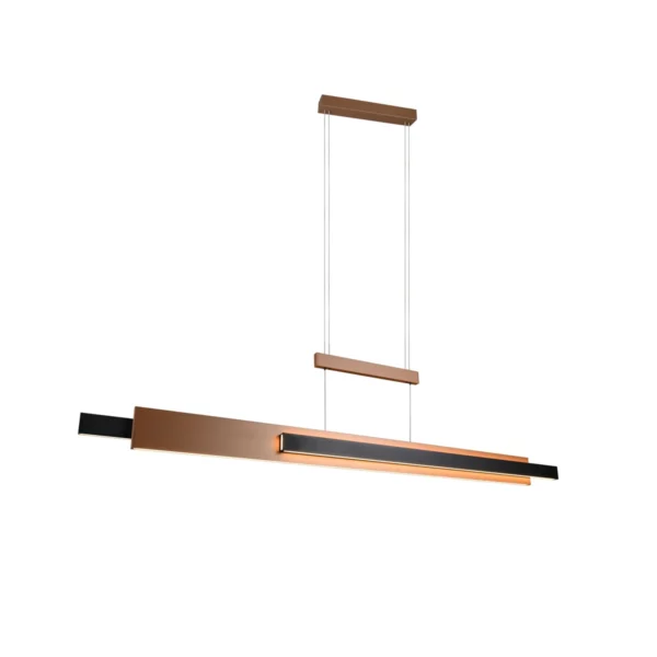 Stijlvolle design hanglamp met eigentijdse kleur en een slanke vormgeving. Rivera combineert moderne technologie met een elegante uitstraling. De geïntegreerde LED lichtbron van 50 watt biedt een indrukwekkende lichtopbrengst van 5500 lumen! De lichtkleur is aanpasbaar van warm wit (2700K) tot daglicht wit. (6000K) De lamp is bedienbaar door middel van de meegeleverde afstandsbediening of de touch sensors bovenop de lamp.
