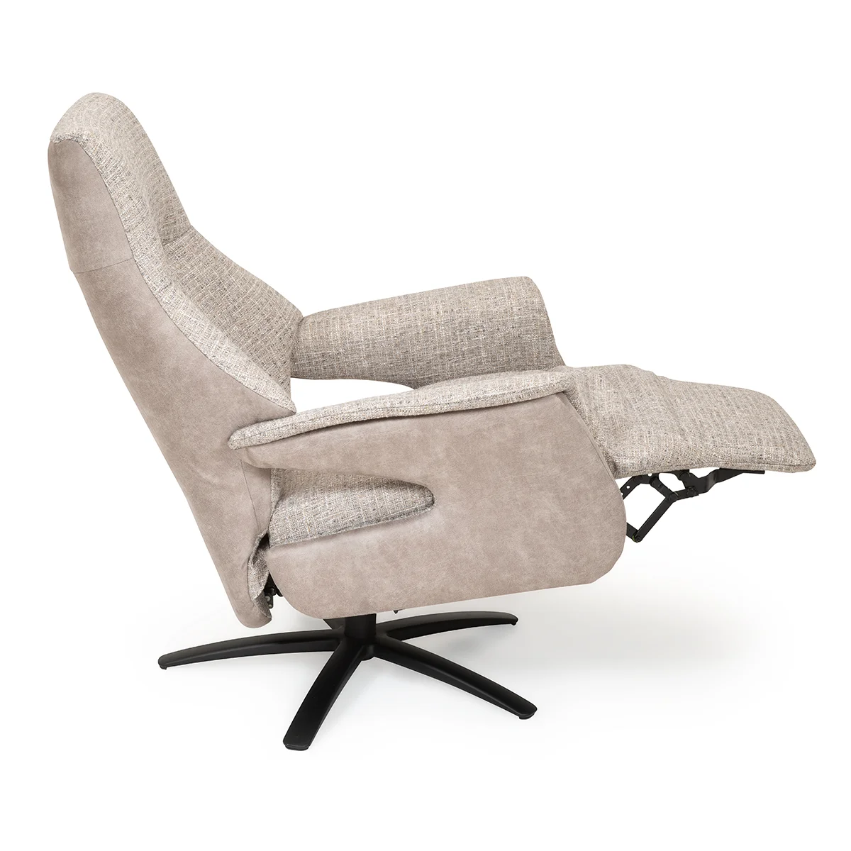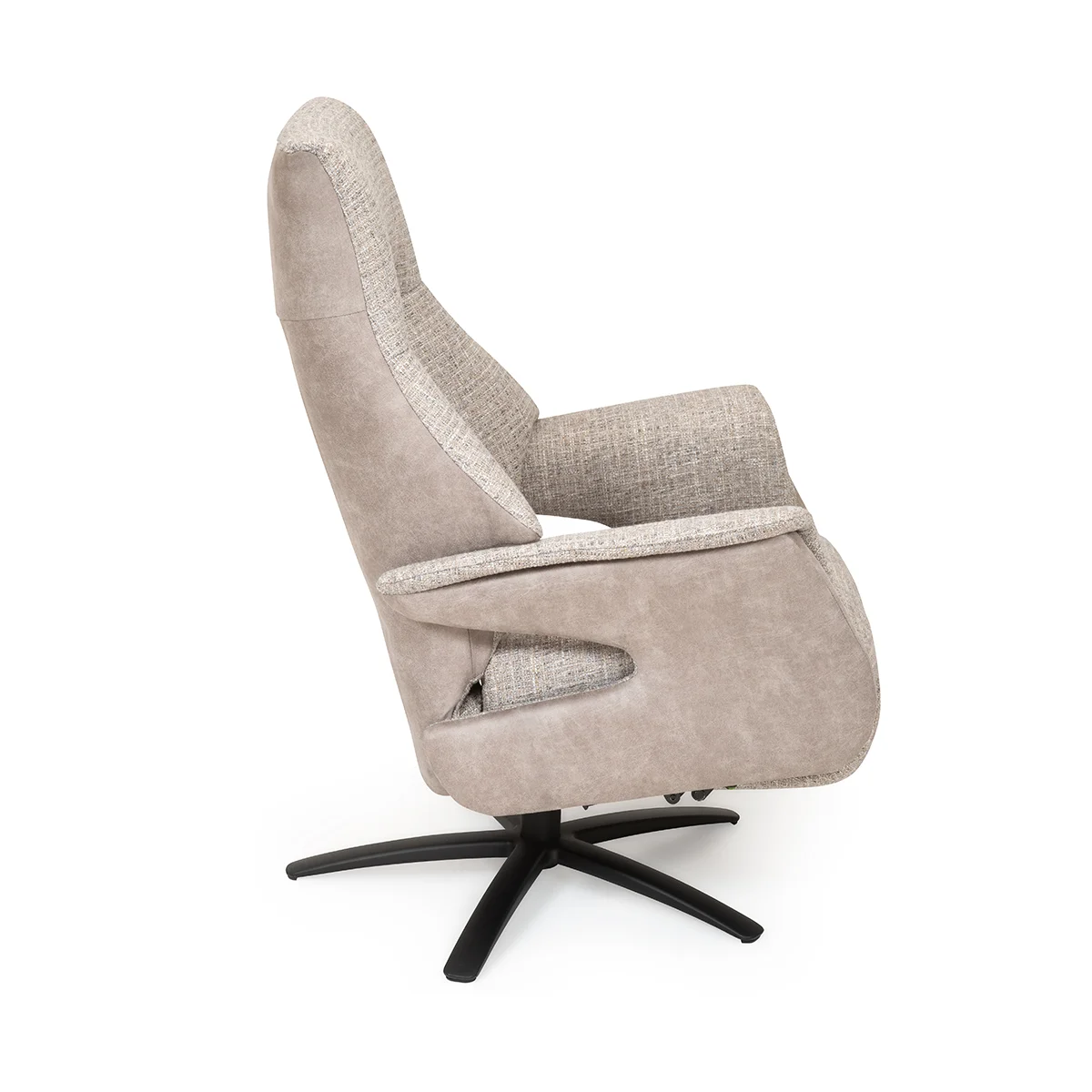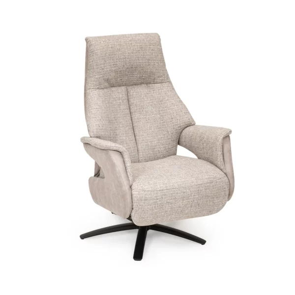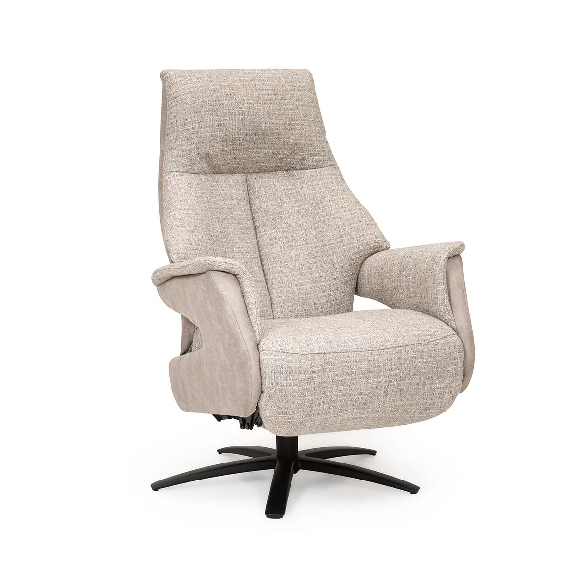 Stijlvolle relaxfauteuil met een open arm en een verticaal stiksel in de rugleuning. Leverbaar als handmatig of elektrische uitvoering. Daarnaast kan er gekozen worden voor een ACCU waardoor er geen snoer nodig is. Leverbaar in SMALL, MEDIUM of LARGE. Verder is er keuze uit veel verschillende bekledingen, kleuren en pootmogelijkheden. Ook mogelijk met een dichte armlegger.