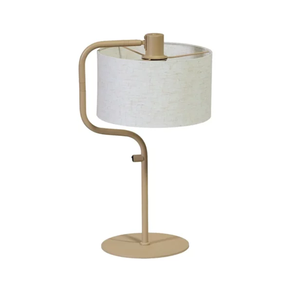 Tafellamp met een sfeervol ontwerp voorzien van een prachtige stoffen lampenkap in de kleur Creme. Het frame in zand kleur zorgt voor een eigentijdse uitstraling. De voet en het frame zijn gemaakt van hoogwaardig materiaal, wat zorgt voor stabiliteit en een lange levensduur. Ook handig is dat de bediening op het armatuur zit.
