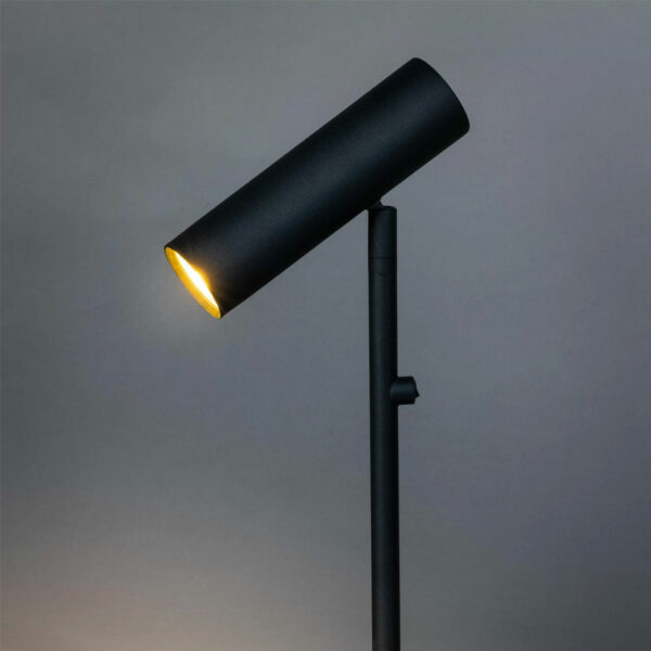 Functionele vloerlamp in een mat zwarte kleur. Je kunt de spot door het kantelgewricht gemakkelijk in de gewenste richting draaien. De bediening zit op het armatuur. Voorzien van een GU10 fitting van maximaal 50 watt. Verder is de lamp 140 cm hoog en heeft de voet een diameter van 25 cm.